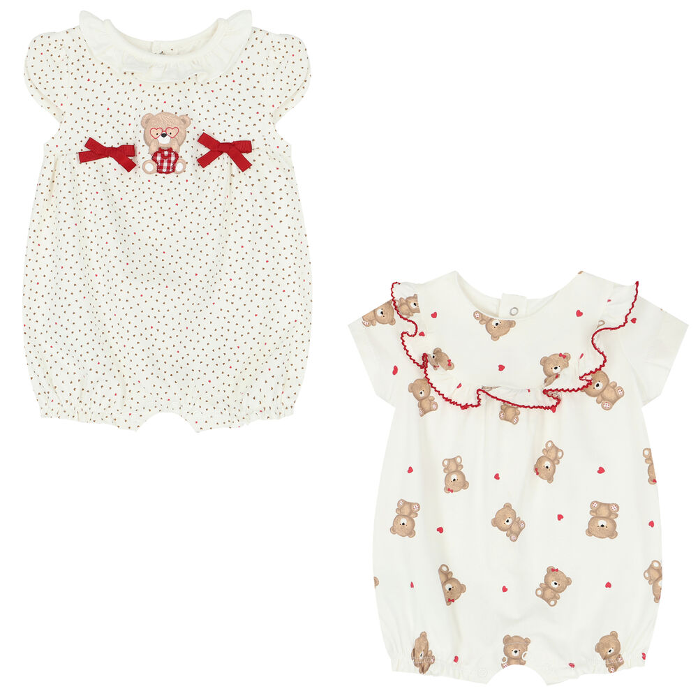 Mayoral Baby Girls Ivory Teddy Bear Rompers 2 Pack Junior Couture Uk