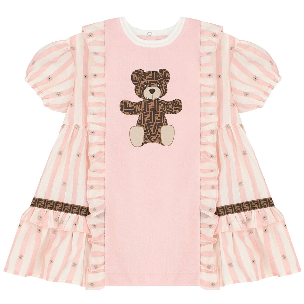 Fendi Baby Girls Pink Teddy Bear Logo Dress Junior Couture Ksa
